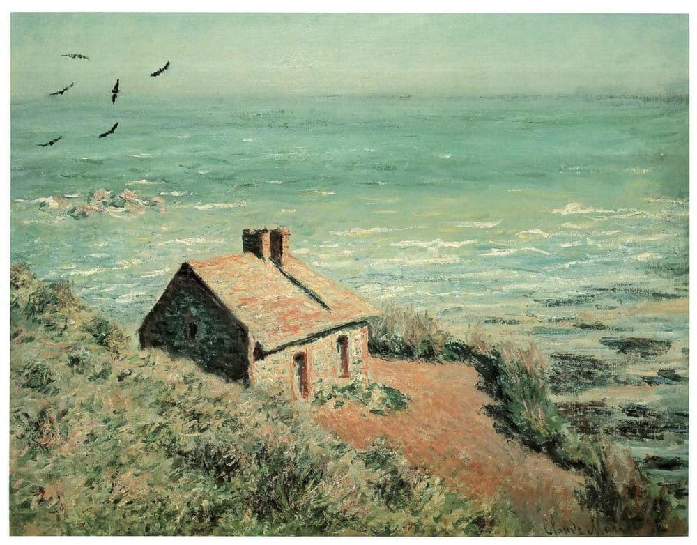 - Value 3-4: Main landscape mass (sky, water, shore, cottage)